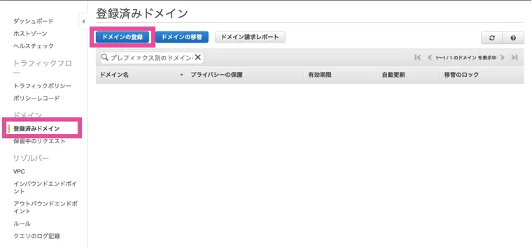 AWSでドメインを取得するには、AWSの**「Route53」**というサービスを使用します。